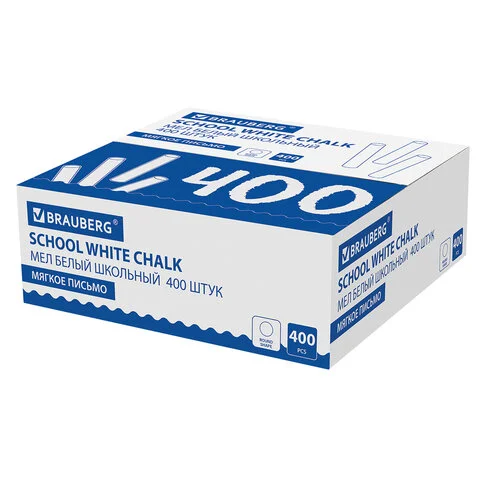 Мел белый круглый мягкий 400 штук, BRAUBERG, картонная упаковка, 227441