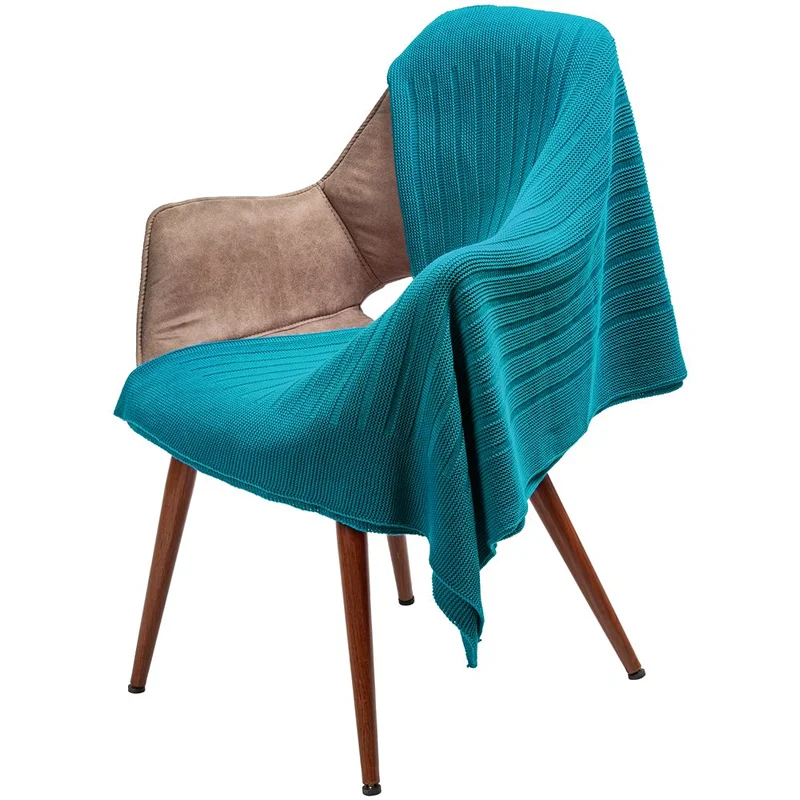 Плед рельефной вязки. Цвет - бирюзовый. Размер: 160х90 см; в сложенном виде: 37х33х5 см. Материал: акрил. Возможные виды нанесения: Шелкография с трансфером; Шелк.с трансфером на ленту ; Шелк.с трансфером на шеврон; Вышивка