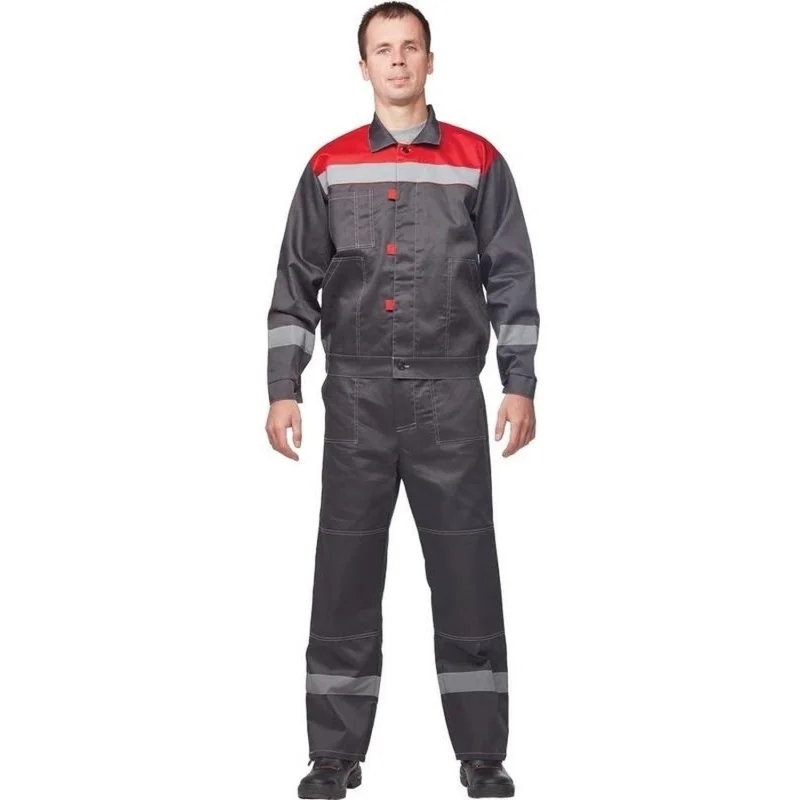 Костюм рабочий летний мужской л20-КБР с СОП серый/красный (размер 60-62, рост 170-176). Состоит из куртки и брюк. Предназначен для использования в сферах логистики, строительства, ЖКХ, сельского хозяйства, легкой промышленности и озеленения.