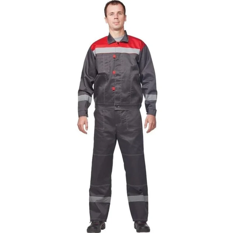Костюм рабочий летний мужской л20-КБР с СОП серый/красный (размер 60-62, рост 182-188). Состоит из куртки и брюк. Предназначен для использования в сферах логистики, строительства, ЖКХ, сельского хозяйства, легкой промышленности и озеленения.