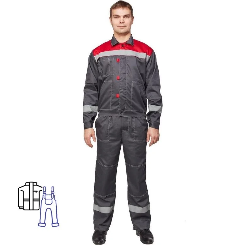 Костюм рабочий летний мужской л20-КПК с СОП серый/красный (размер 48-50, рост 170-176). В состав входит куртка и полукомбинезон. Предназначен для использования в сферах логистики, строительства, ЖКХ, сельского хозяйства, легкой промышленности и озеленения.
