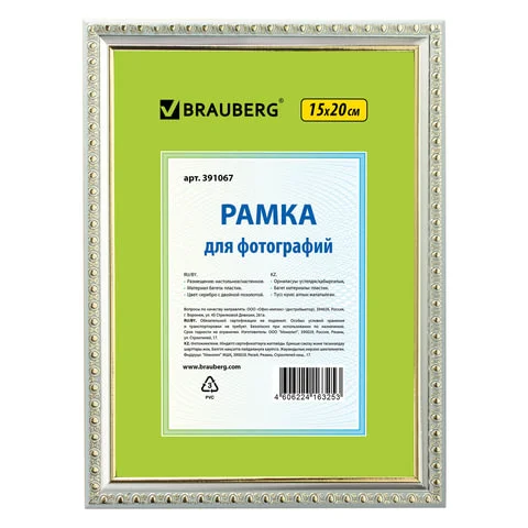 Рамка 15х20 см, пластик, багет 16 мм, BRAUBERG 'HIT5', серебро с двойной позолотой, стекло, 391067
