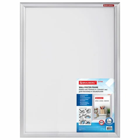 Рамка настенная с 'клик'-профилем A1 (594х841 мм) алюминиевый профиль, BRAUBERG 'Extra', 238223