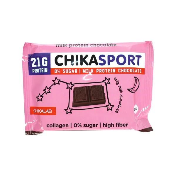 Шоколад Chikalab Chika Sport протеиновый молочный, 100 г – вкусное и полезное лакомство, которое не наносит вреда фигуре. Оно отличается оригинальным, интересным вкусом, легкой текстурой и приятным ароматом. Может прийтись по душе всем членам семьи. Продукт содержит большое количество витаминов и полезных элементов, которые оказывают положительное воздействие на пищеварение, поднимет настроение и подарит заряд бодрости. Благодаря высокой энергетической ценности он быстро утоляет чувство голода, за счет чего может выступать хорошим вариантом перекуса во время перерыва на работе или учебе. С таким шоколадом удобно добирать суточную норму белка, тем самым сохраняя здоровье кожи, волос и ногтей. Лакомство можно употреблять после тренировки, во время любого приема пищи, в качестве десерта к горячим напиткам. Поставляется в плотной упаковке с интересным дизайном. Благодаря компактным размерам, продукт удобно брать с собой на прогулку или в путешествие. Компания ООО БОМББАР — крупный российский производитель полезной снэковой продукции без сахара, высокобелковых перекусов, завтраков, протеиновой выпечки, топпингов, соусов, низкокалорийного шоколада, спортивного питания, всего более 80 видов продукции. Представлена брендами Bombbar, Chikalab, Snaq Fabriq в России, странах СНГ, Монголии и ОАЭ. Бренд CHIKALAB создан в 2019 году. В линейке бренда представлены фитнес-десерты в протеиновом шоколаде без сахара, витамины для красоты и прекрасного самочувствия, продукция для современных и активных людей, не готовых жертвовать вкусом ради пользы. Итого — более 260 наименований.