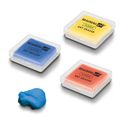 Ластик-клячка художественный цвета ассорти, в футляре, 40x36x10 мм, BRAUBERG ART 'CLASSIC', 271155