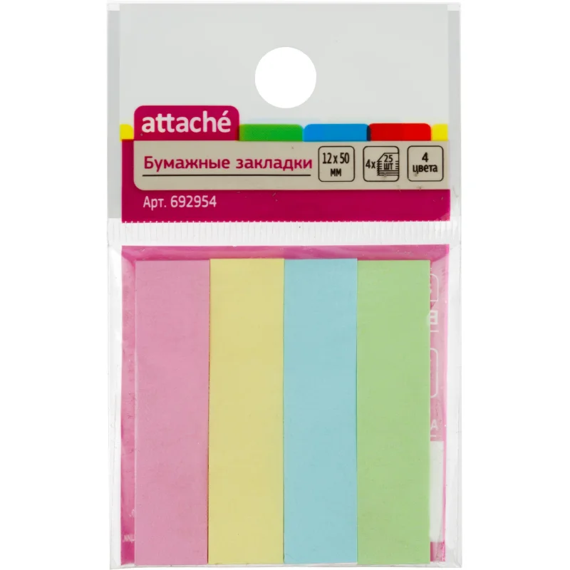 Предлагаем купить Клейкие закладки бумажные 4цв.по 25л. 12ммх50 attache дешево. Каждую неделю проверяем насколько низкие у нас цены. Любим своих клиентов, поэтому устанавливаем на Закладки самоклеящиеся одну из самых низких цен по Северо-Западу.