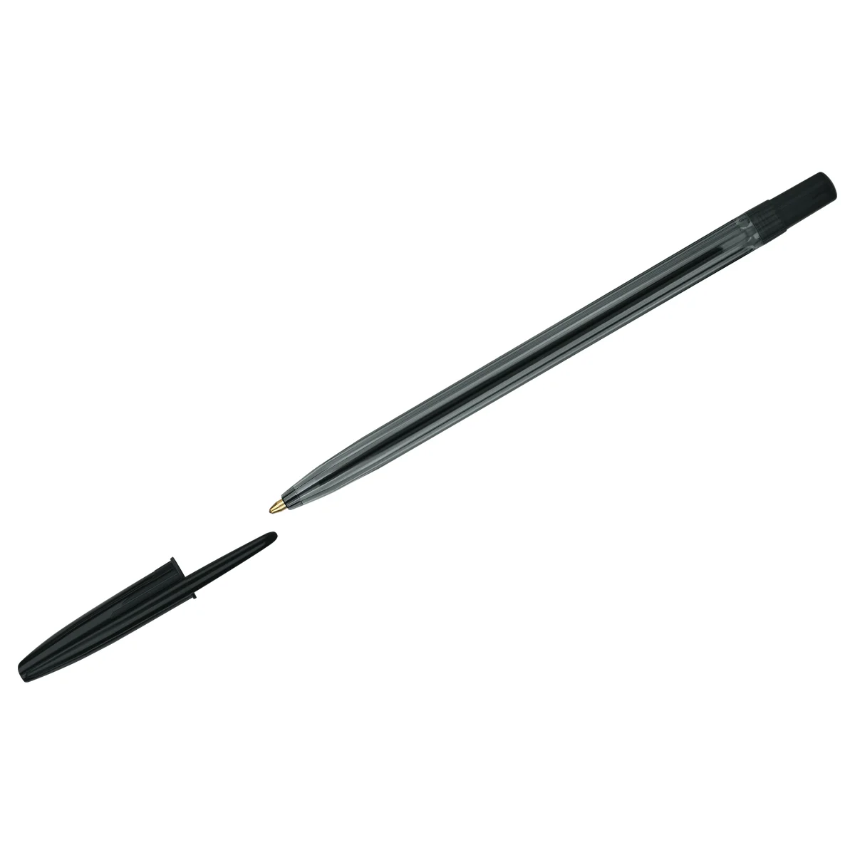Шариковая ручка с классическим прозрачным корпусом, вентилируемым колпачком и удобной зоной захвата с рифлением, препятствующим ск...