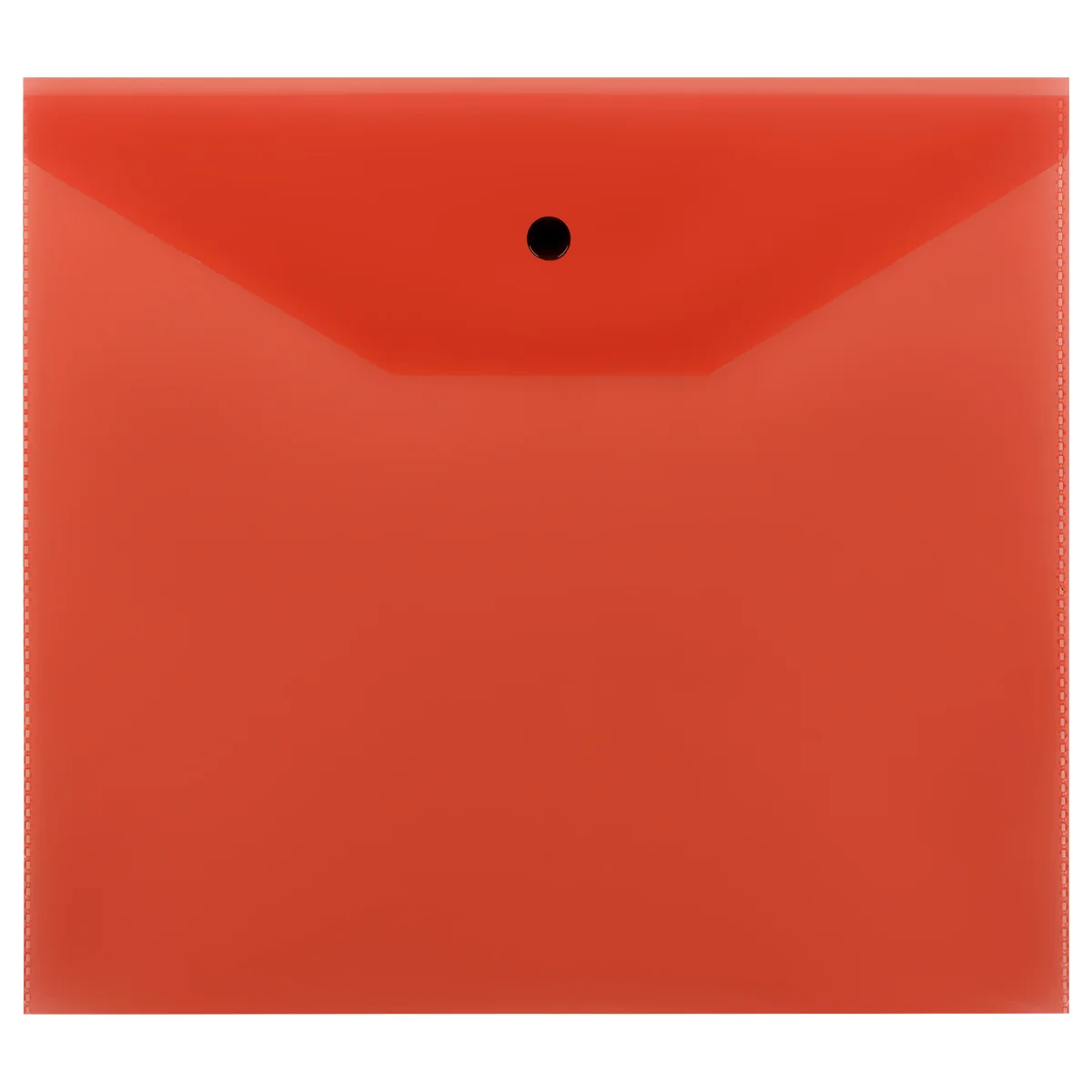 Папка-конверт на кнопке СТАММ А5+, 120мкм, пластик, прозрачная, красная