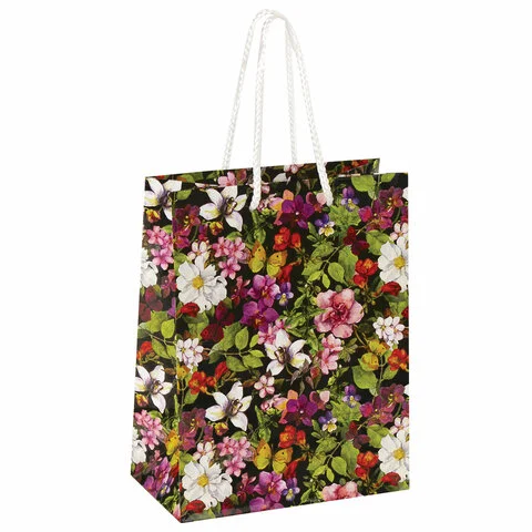Пакет подарочный 17,8x9,8x22,9 см, ЗОЛОТАЯ СКАЗКА 'Цветочный принт', ламинированный, 606577
