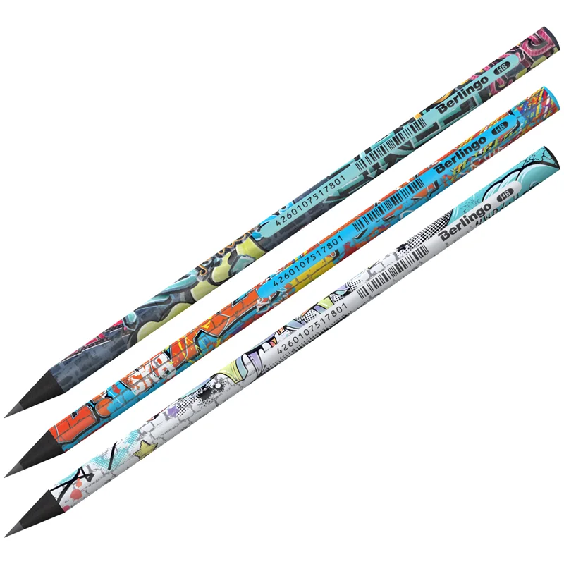 Чернографитный ударопрочный карандаш Berlingo 'Street Art' из черного дерева, с заточкой. Матовое покрытие корпуса, дизайны ассорт...