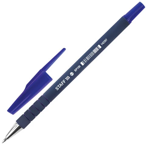 Ручка шариковая STAFF 'EVERYDAY' BP-190, СИНЯЯ, корпус прорезиненный синий, узел 0,7 мм, линия письм
