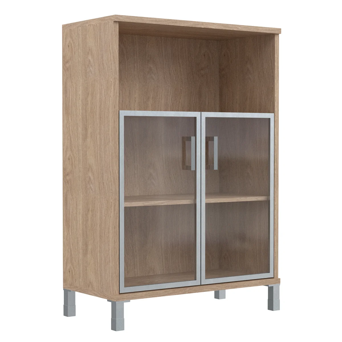 Шкаф средний Skyland Born B 420.4, орех даллас, 900х450х1286мм, средний, с малыми стеклянными дверьми в алюминиевой рамке