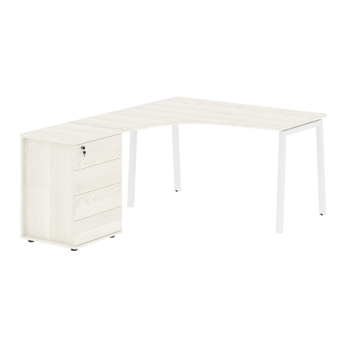 Стол эргономичный с тумбой ELCET 1318(L) Ясень Траун/Белый 1360х1880х750 EDIS